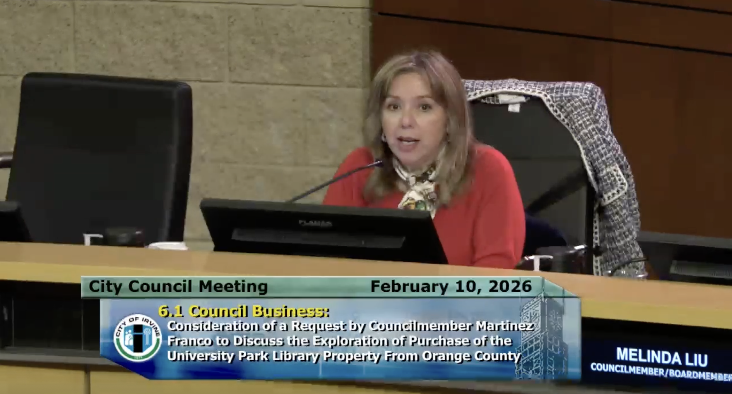 IrvineCityCouncil@CityofIrvine.org, katrina.foley@bos5.oc.gov, LarryAgran@cityofirvine.org, JamesMai@cityofirvine.org, MelindaLiu@cityofirvine.org, WilliamGo@cityofirvine.org, MikeCarroll@cityofirvine.org, BettyMartinez@cityofirvine.org, KathleenTreseder@cityofirvine.org